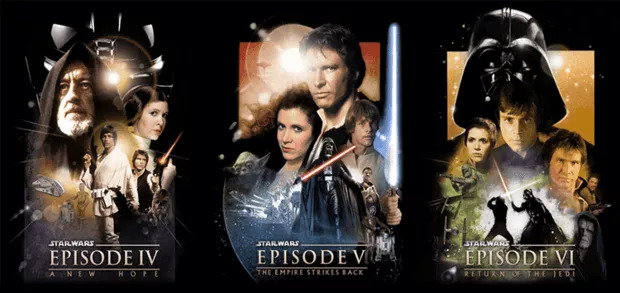 ↑这三部曲被称为“老三部曲”,由“星战之父”乔治·卢卡斯创作,虽然只有“新希望”是他的导演作品。