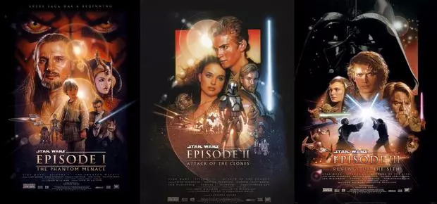 ↑这三部曲被称为“前传三部曲”,是由卢卡斯创作老三部曲时,当时写的几十页前传故事发展而来。由于“前传三部曲”拍摄与上映时间在“老三部曲”之后,有时前传三部曲会被称为“星战1”“星战2”“星战3”,老三部曲有时会被称为“星战4”“星战5”“星战6”。这三部都是卢卡斯的导演作品。