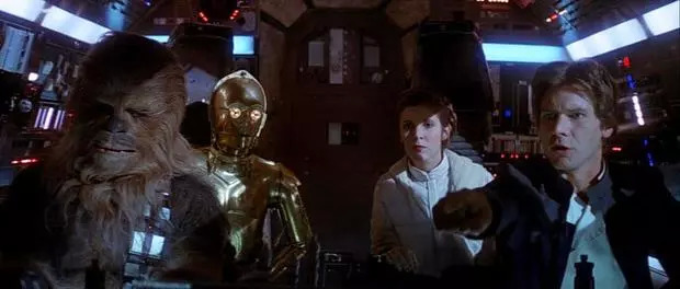 韩第一次与楚巴卡和兰多·卡瑞辛相遇;