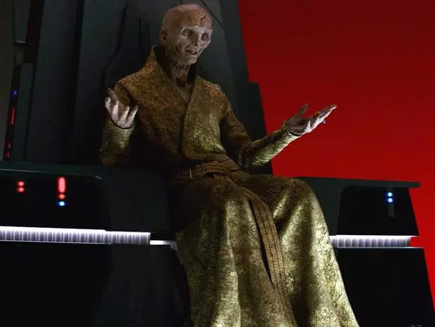 斯努克作为《星战7》中努力营造的黑武士/帕尔帕廷级别大boss,在《星战8》中直接被干掉了……斯努克到底是谁?来自哪里?有何背景?是何居心?《星战9》开头,成为了新晋最高领袖的凯洛·伦发现帕尔帕廷大帝还活着,藏在西斯尊主的隐秘领域中。当他遇到现在是盲人的帕尔帕廷时,我们看到斯努克的克隆体被装在罐子里,原来他是帕尔帕廷创造出来的傀儡。
