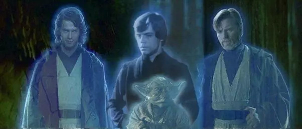在蕾伊万念俱灰、倒地不起的时候,她一下听到了住在她身体中、世世代代绝地武士们的鼓励声音,其中有海登·克里斯滕森的“阿纳金”、 弗兰克·奥兹的“尤达大师”、伊万·麦格雷戈与亚利克·基尼斯的“欧比旺”、连姆·尼森的奎刚·金,还有塞缪尔·杰克逊的“梅斯·温杜”等等。啊,这一幕真的很感人,光是听到他们的声音,寒毛都竖起来了。假如大家是以影像而不是声音形式出现的话,粉丝们恐怕就要哭崩了。