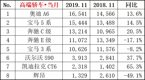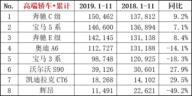 图:高端轿车1-11月累计销量数据 来源:乘联会官网