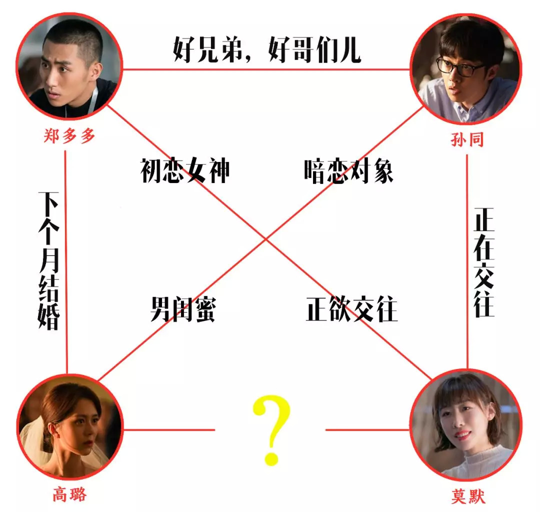 郑多多也是浪荡惯了,说白了就是个“渣男”。再过一个月就要和高璐(汤敏饰)结婚,却跟中学时期的初恋女神莫默(任素汐饰)又搞在了一块儿。