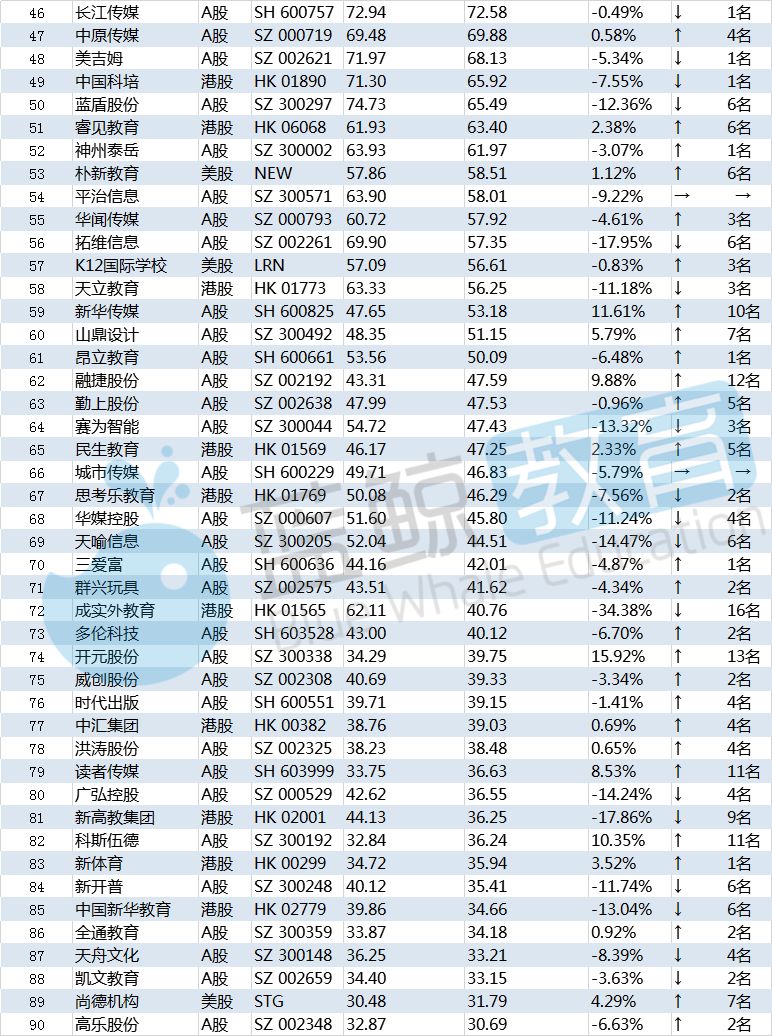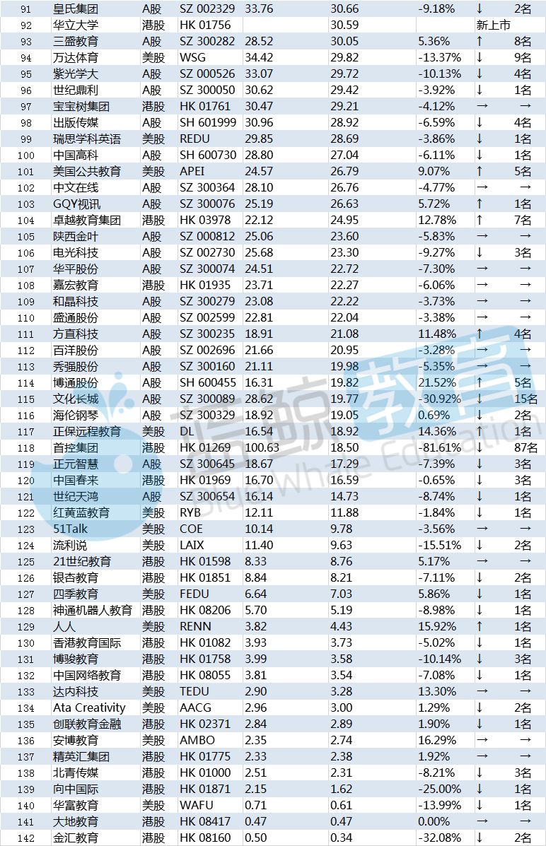 这三大资本市场的142家企业包括:教育上市公司A股前76名、港股的前38位和美股前28家。