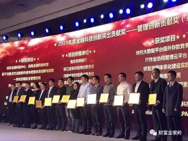 12月19日,中国人民银行主管的《金融电子化》杂志社,在北京举行了以“致敬时代· 致敬创新”为主题的2019中国金融科技年会暨金融科技及服务优秀创新奖颁奖典礼。银行、证券、保险、金融科技公司以及信息产业界等400余名行业专家领导参会。