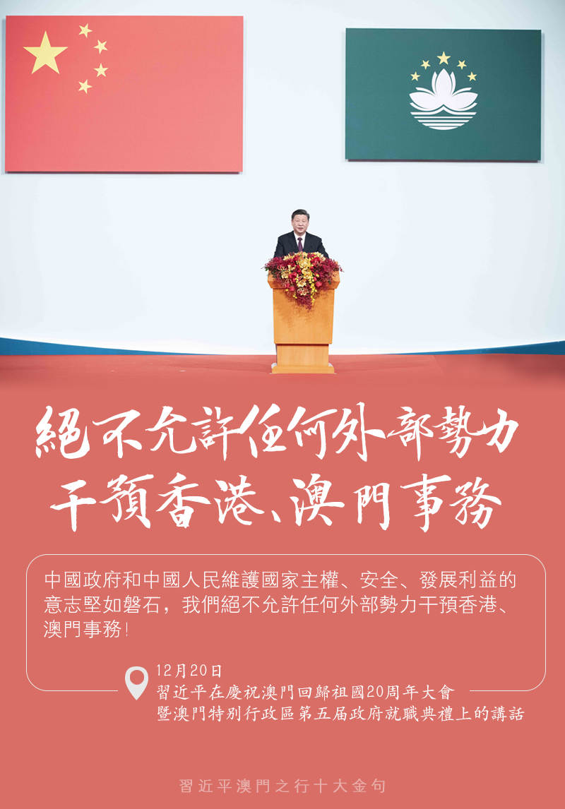 12月18日至20日,中共中央总书记、国家主席、中央军委主席习近平走进澳门,出席“庆祝澳门回归祖国二十周年”系列活动。