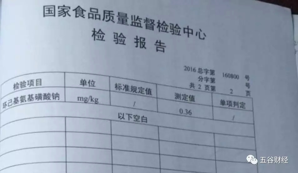 国锦(上海)检测技术有限公司2016年5月23日《检验报告》显示,送检样品白酒中的甜蜜素测定值为0.384mg/L;国家食品质量监督检验中心2016年8月3日《检验报告》显示,甜蜜素测定值为0.36mg/kg;国家食品质量监督检验中心2019年8月29日《检验报告》显示,甜蜜素测定值为0.344 mg/kg。