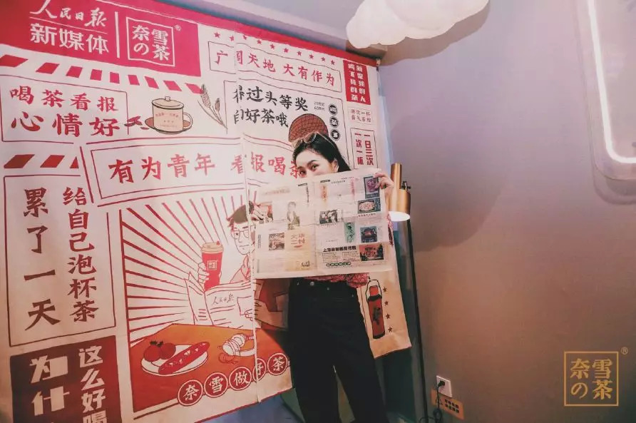 奈雪×人民日报新媒体快闪活动,图片来自奈雪的茶