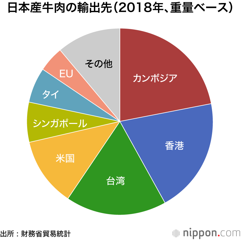 目前日本牛肉出口地区中,排名前四的分别是柬埔寨、中国香港、中国台湾和美国。但哪怕是早前中国大陆对日本牛肉未解禁时,中国大陆也是颇受重视的出口市场。尽管中国的人均肉类消费中猪肉仍然以压倒性比例排名第一,但过去五年中国的人均牛肉消费量增长迅速,国家统计局数字显示,2012年到2016年,中国人均牛肉消费量增加了33%。