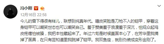 不得不说,近几年发生在冯小刚身上的事,让他不再“讽刺”和“黑色”了。