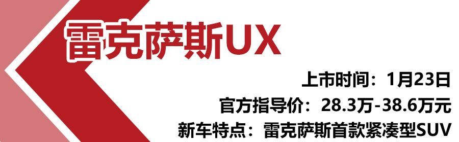 雷克萨斯UX在今年年初进入市场,官方指导价为28.3万-38.6万元。新车的家族式设计风格依然浓厚,纺锤型前中网、“钩”形日行车灯等家族元素依旧能够看到,整车视觉风格年轻而运动。