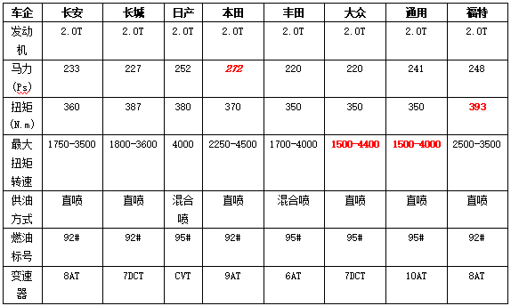 其实,在中国品牌2.0T发动机阵营,长安的蓝鲸发动机和长城等自主研发的2.0T发动机可谓是国产2.0T发动机阵营最强的发动机,可在合资日产、本田、丰田、大众、通用和福特等同排量2.0T发动机面前,还有优势吗?不比不知道,一比吓一跳。