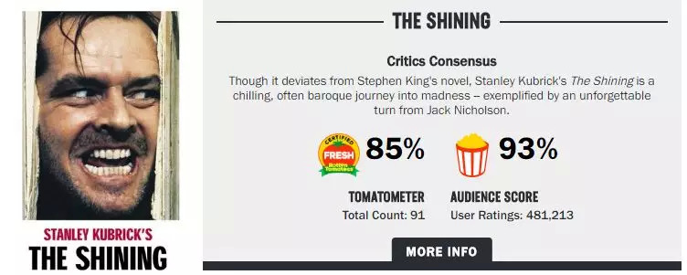 但令人遗憾的是,《闪灵》拥有这么豪华的成绩单,但却不被原著作者斯蒂芬·金喜爱。