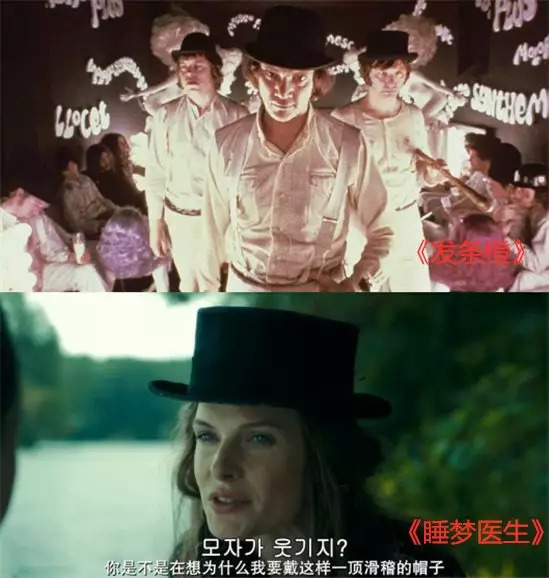丽贝卡·弗格森在片中的“帽子造型”,其实致敬了库布里克的《发条橙》。