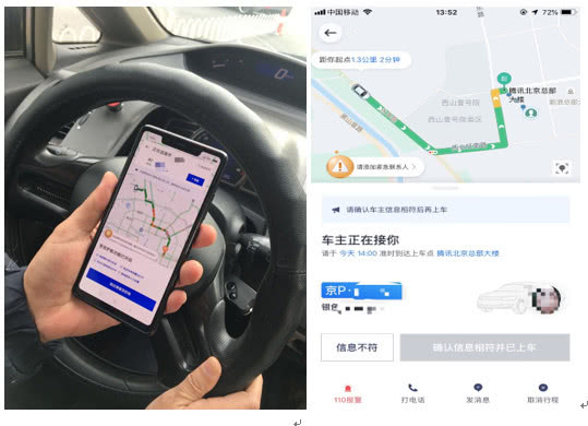 腾讯新闻《潜望》以乘客身份完成安全任务后随即发单,在确认车主的邀请并完成支付后,才可以通过电话与信息与对方进行联系,之前页面上隐藏的车主照片此刻也会显露。上车前,顺风车车主进行人脸识别后,司乘双方需进行互相确认。