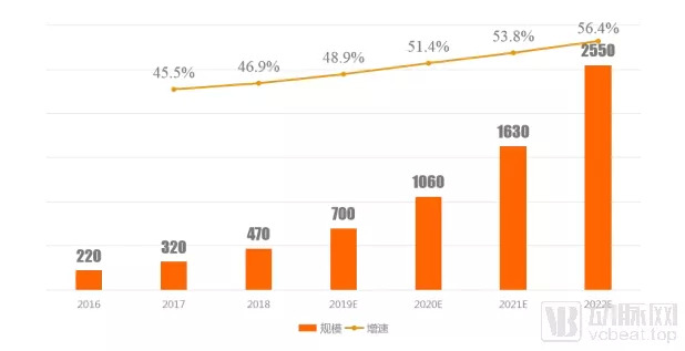 2016~2022 年互联网医院服务市场需求,数据来源:产业信息网,动脉网知识库