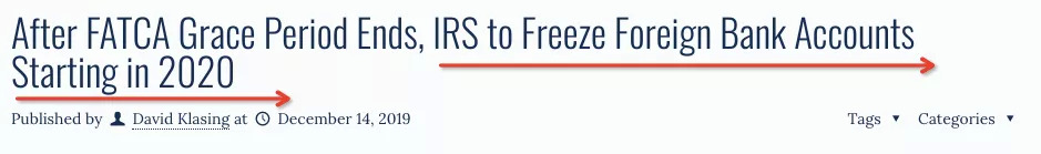 从2019年12月31日开始,美国国税局IRS,将最终结束其长期运行的《海外账户纳税法案》(FATCA“肥咖”条款)宽限期。