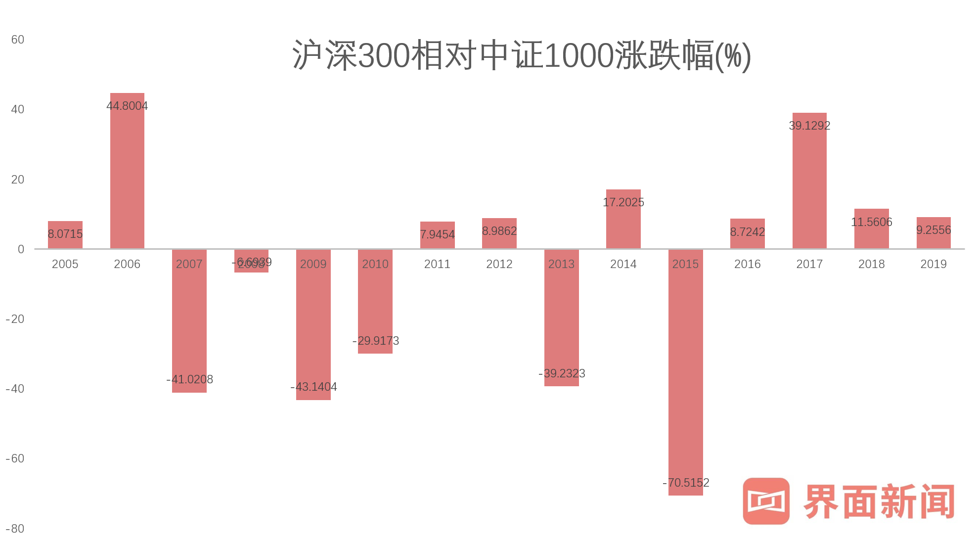 以大盘股代表沪深300和小盘股代表中证1000作为对比(中证1000从2005年诞生),在2015年以前,大盘股跑赢小盘股的情况一般只能持续两年,而2016年以来,蓝筹股的相对强势已经持续了近四年。这种情况下,用“白马股行情”来解释已经有些苍白,一是大批白马股在经济下行周期中已经倒下,二是按过去规律白马股相对强势顶多能持续两年。