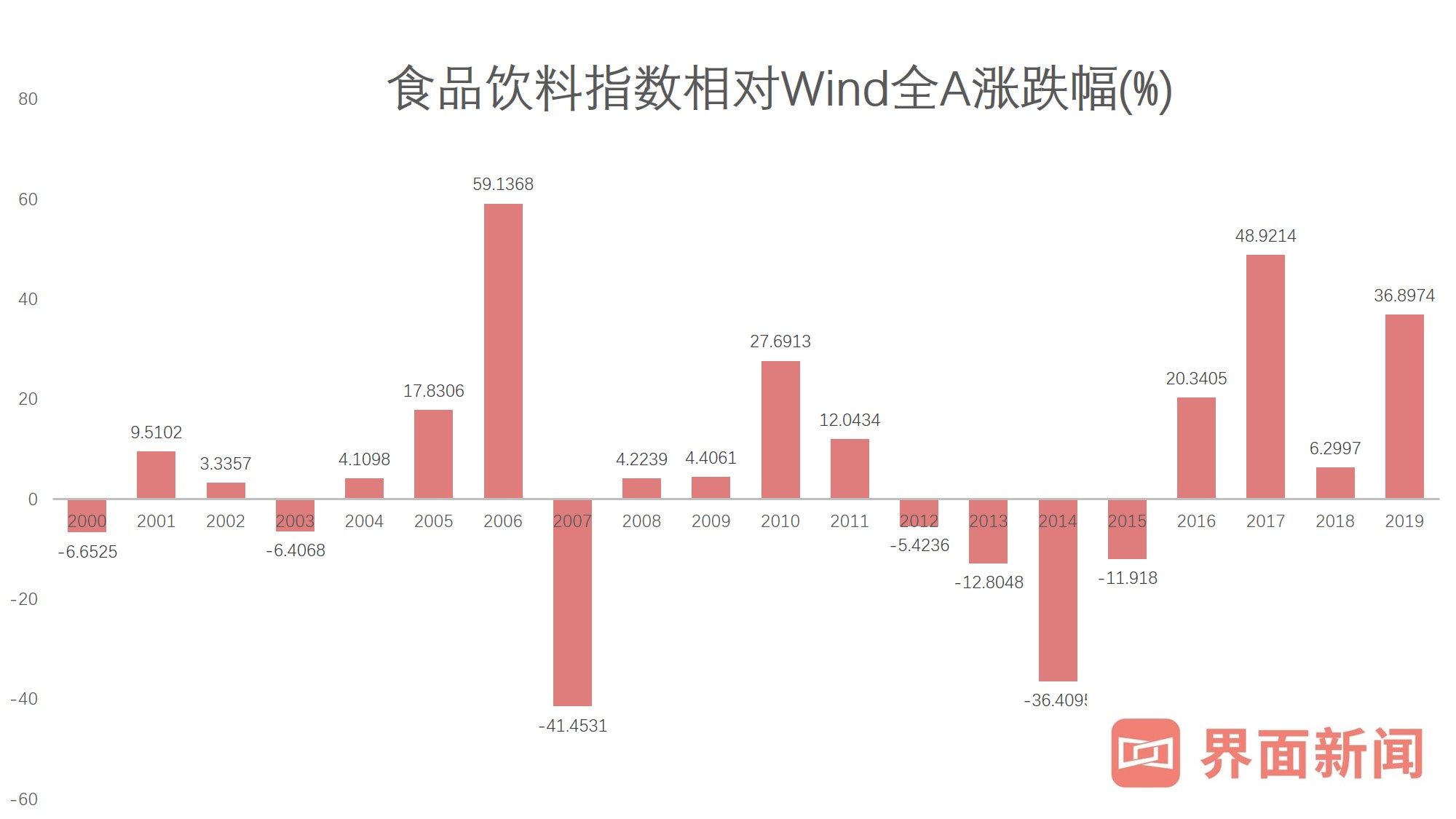 从食品饮料指数相对Wind全A涨幅看,该指数连续4年跑赢大盘。