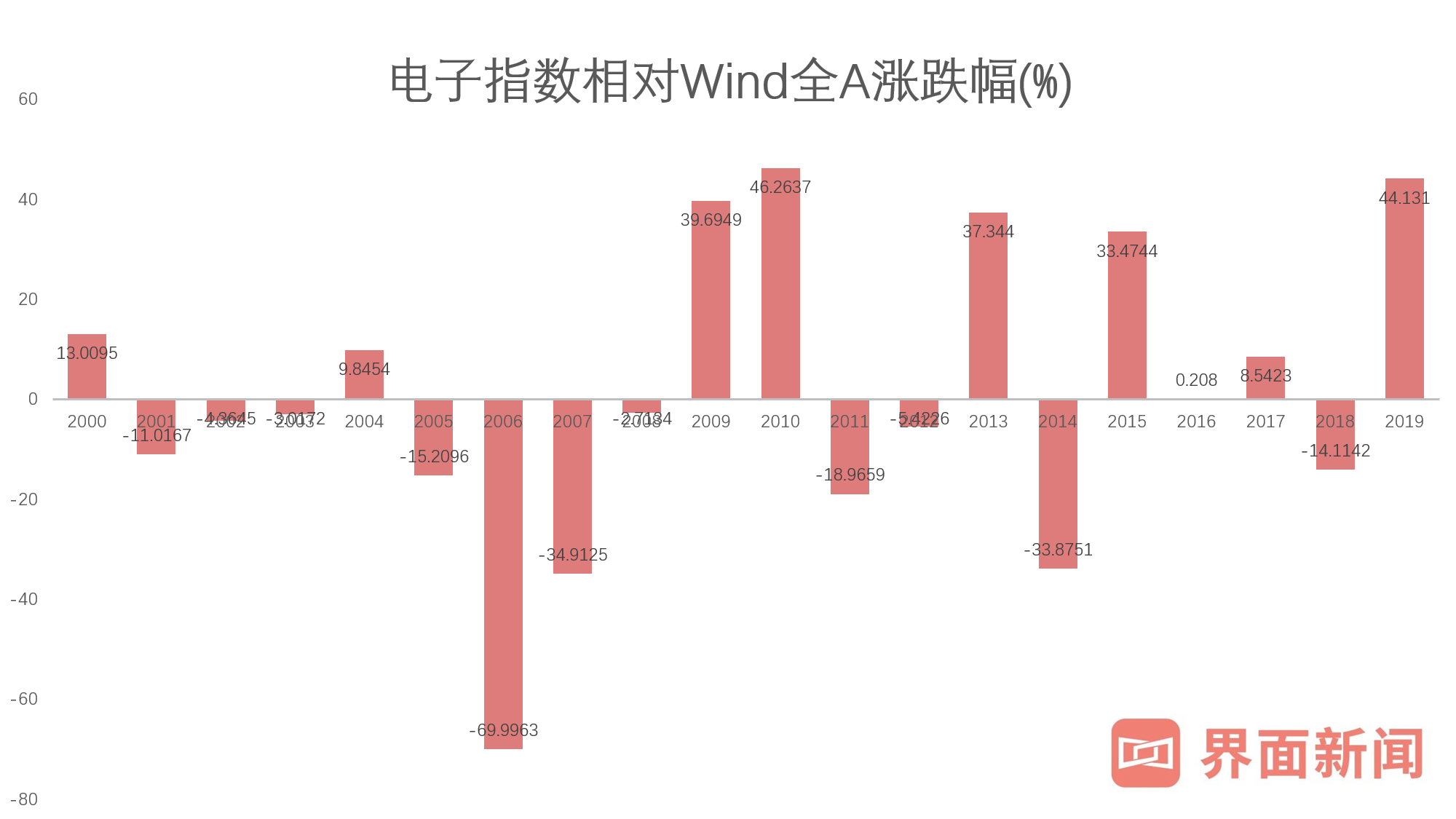 从电子指数相对Wind全A涨幅看,该指数今年一年跑赢大盘。