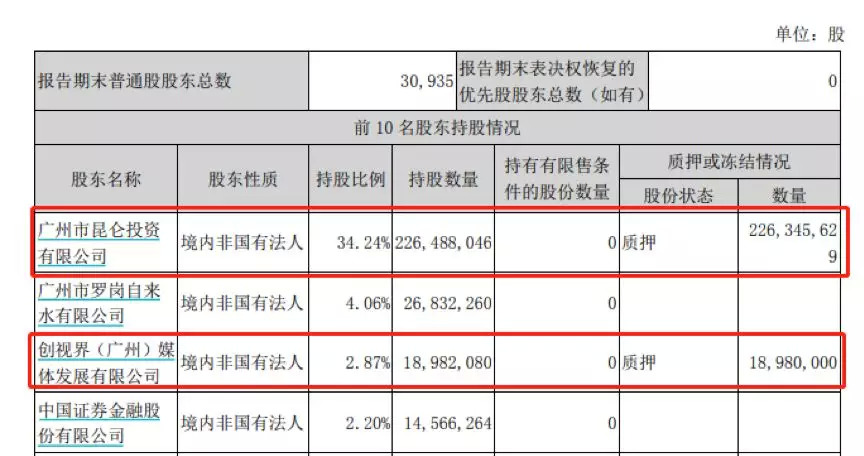 而根据2019年三季报,昆仑投资的关联股东创视界(广州)媒体发展有限公司同样质押了其所持有的几乎全部股份。(CJT)