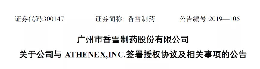 根据协议,Athenex有偿授予香雪制药上述在研产品、在授权区域内(中国内地、香港和澳门区域)及领域内独家开展商业化的权利及为该等商业化目的而享有相关知识产权的权利等。而香雪制药需要向Athenex支付3000万美元预付款、不超过11000万美元的研发里程碑款项、不超过4000万美元的销售里程碑款项以及其他一些费用。