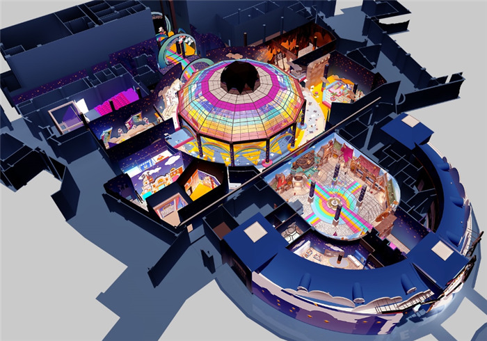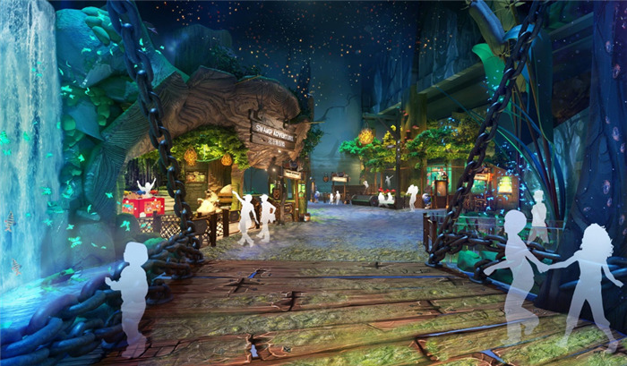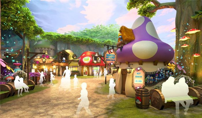 整段旅程以IP形象和动漫故事为主线,园内游乐设施的命名、体验及互动方式都与蓝精灵结合,以蓝精灵漫画和电影中最著名的场景为灵感。园内也采用了室内灯光、AR互动体验设备、全息投影装置等设施以强化游客的沉浸式体验。
