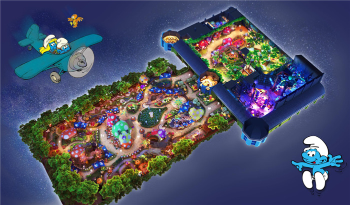 比利时漫画家贝约(Peyo)经典作品《蓝精灵》在八十年代进入中国,是几代人共同的童年记忆之一。世茂集团合作比利时蓝精灵版权方IMPS,推出了亚太区首座蓝精灵主题乐园,将动画中的场景搬进主题乐园,其中的经典角色蓝爸爸、女神蓝妹妹、智多星聪聪、麻烦制造者笨笨、发明家灵灵以及邪恶的格格巫也化身为乐园中的人物角色。