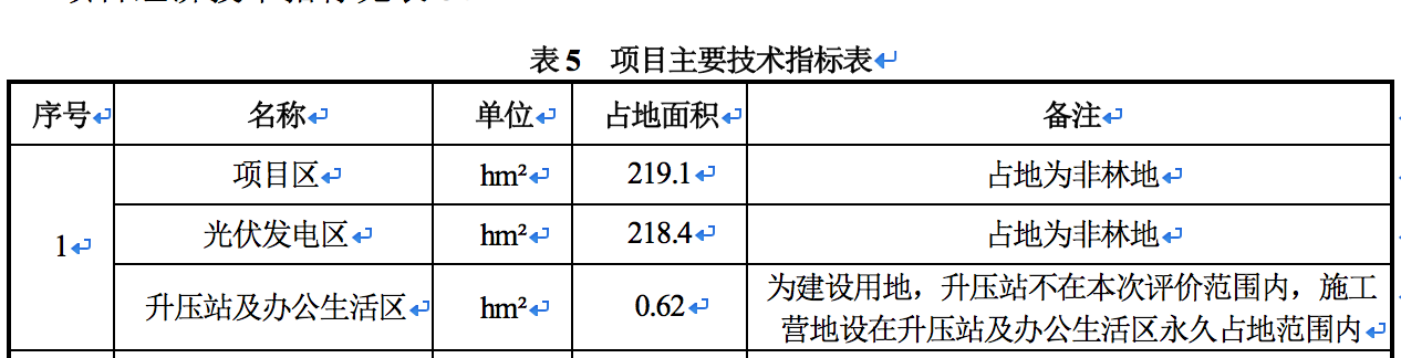 该项目区主要由光伏发电区和办公生活区两部分组成,前者占地面积218.4公顷,为非林地;后者占地面积0.62公顷,为建设用地。
