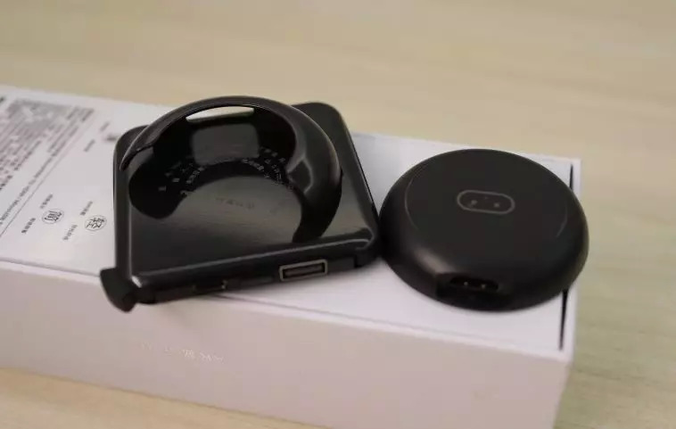 无线串流适配器背面为复位按钮(长按5秒,可清除储存数据),侧面设有HDMI、USB、Micro-USB接口。无线适配器通过与移动电源(5000毫安)连接供电。用户首次使用时,需要根据屏幕显示的操作与WIFI进行连接。