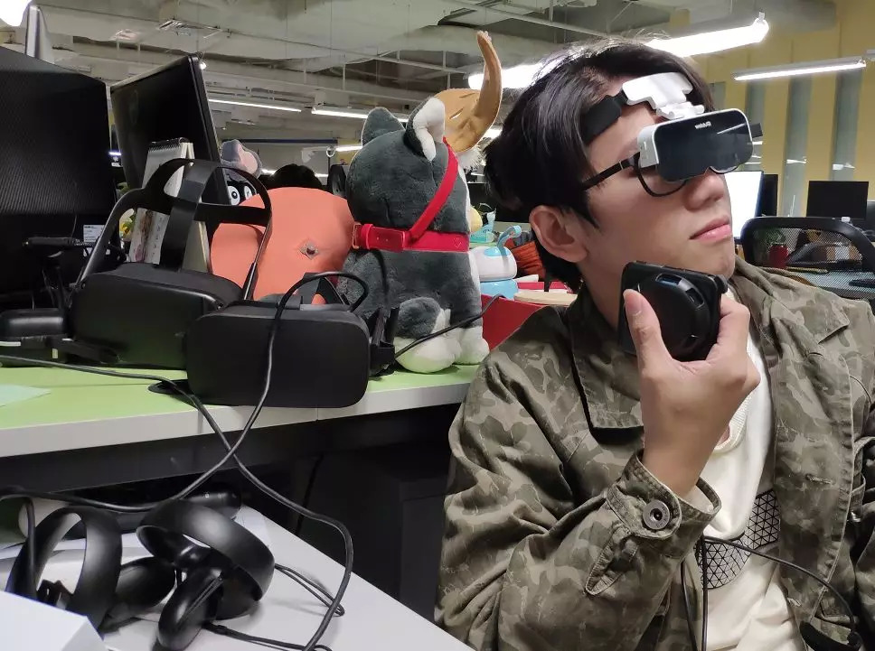 由于小灵镜的重量相当于普通眼镜,佩戴后不会像VR一体机或AR一体式头显一样对头部或面部产生压迫感。参与体验的三名同事在体验一个小时后均没有对设备产生排斥,对产品舒适度给出了一致好评。松紧头带设计便于拆卸,且佩戴后不会对发型产生影响。