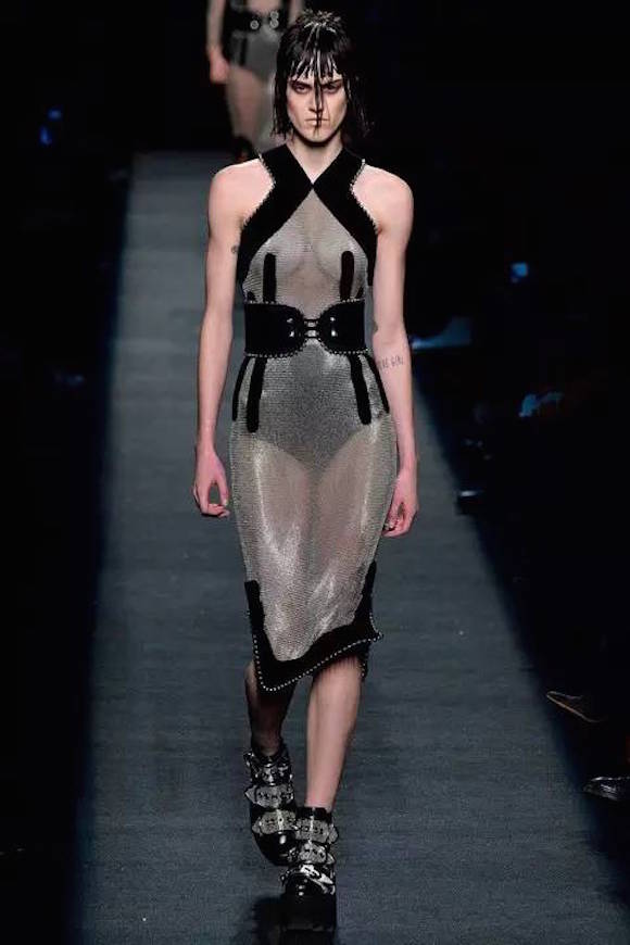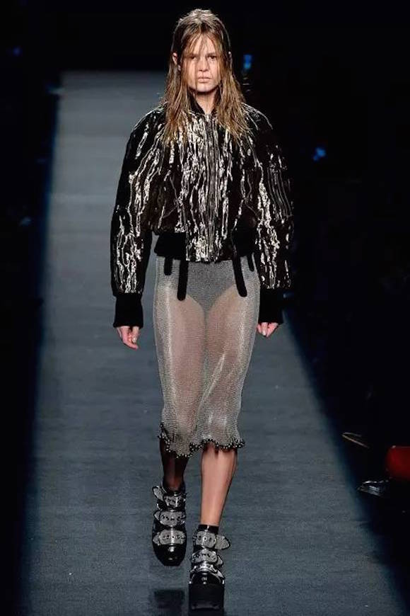 当然,这个词听起来并非出于多么善意的目的,但人们穿上“Fugly”的衣服并非仅仅为了区别于外行人。偶尔还是会有一丝相同的“类次文化”式反抗意识徘徊于其中——正如Alexander Wang 的2015 秋冬系列,其灵感来自哥特风原宿女孩和金属党。当一个人想要建立自己的地下身份时,这种几乎被集体公认为“丑”的审美特质就成了一个基本要素。