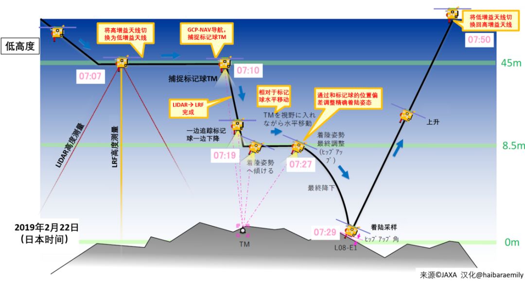 隼鸟2号第一次着陆采样流程(低高度段)。
