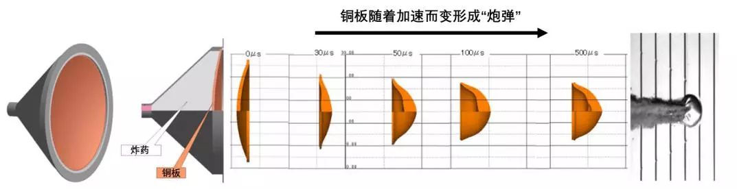 被扔下的撞击器在半空中引爆炸药,把底端厚约5毫米、重2公斤的纯铜质薄板“压缩”为一枚“炮弹”,使之高速撞向龙宫表面。