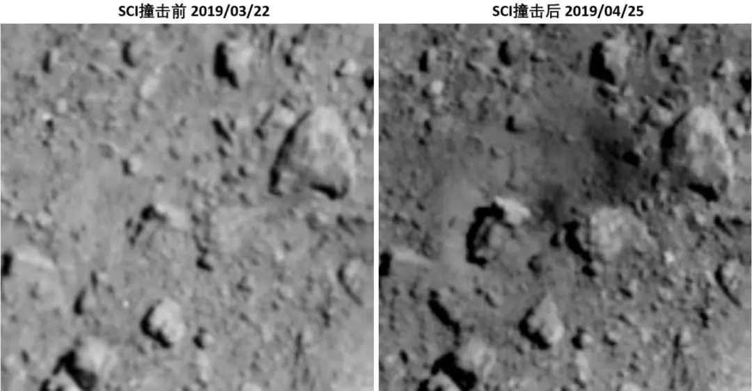撞击非常成功,直接在龙宫表面炸出了一个直径十多米的人造撞击坑,隼鸟2号自己安全避难,毫发无损。