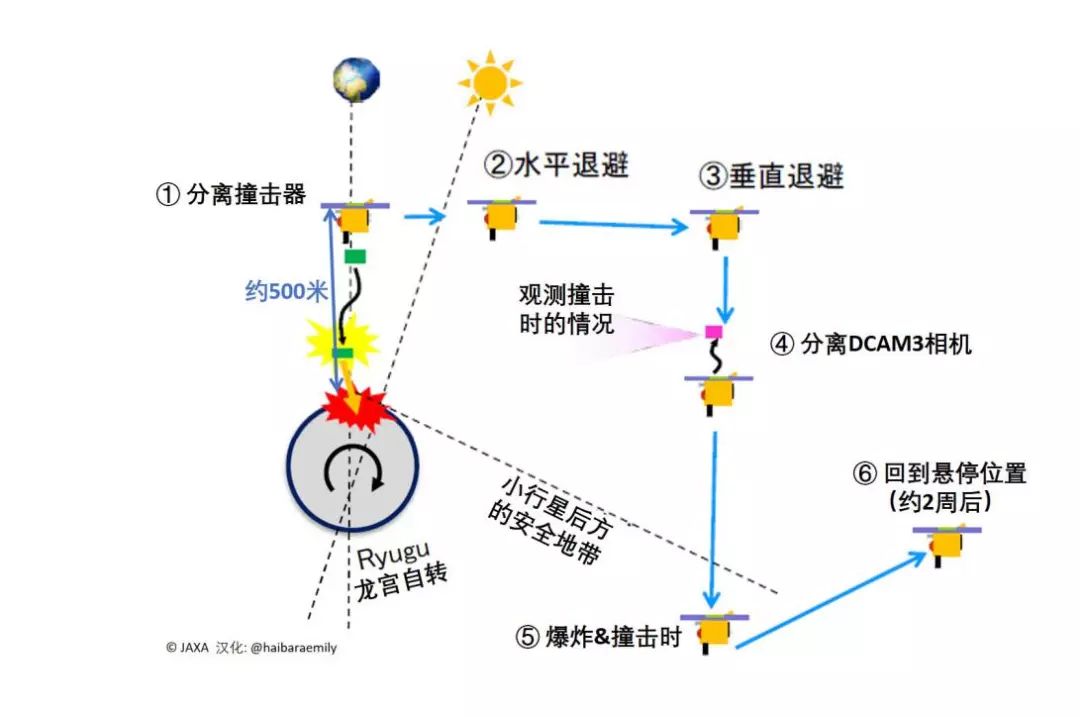 隼鸟2号投下撞击器之后的躲避计划。来源:改编自参考文献13