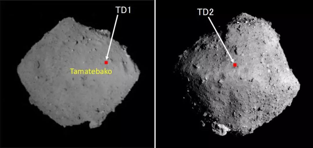 第一次着陆采样点TD1和第二次着陆采样点TD2的位置。来源:JAXA、东大等