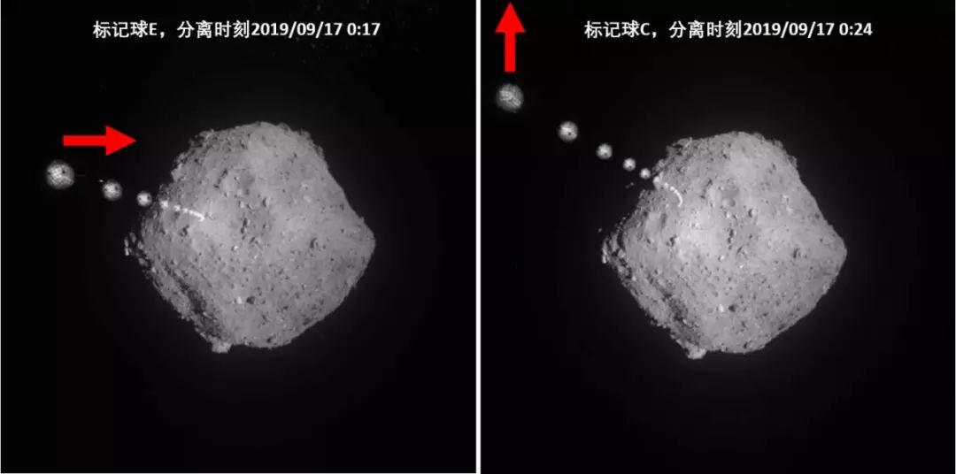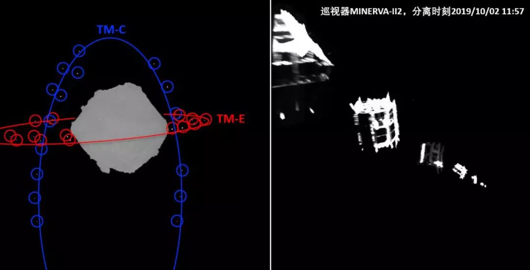 在已经无法拍照和观测的情况下,隼鸟2号项目组极尽巧思,让两枚标记球TM-E、TM-C和巡视器MINERVA-II2从更高的高度上(约1公里高处)被释放向龙宫表面,观察它们在龙宫微弱引力下的运动状态,同时提升龙宫的重力场模型。(本节详见:隼鸟2号:标记球和巡视器的奇幻环球旅程)