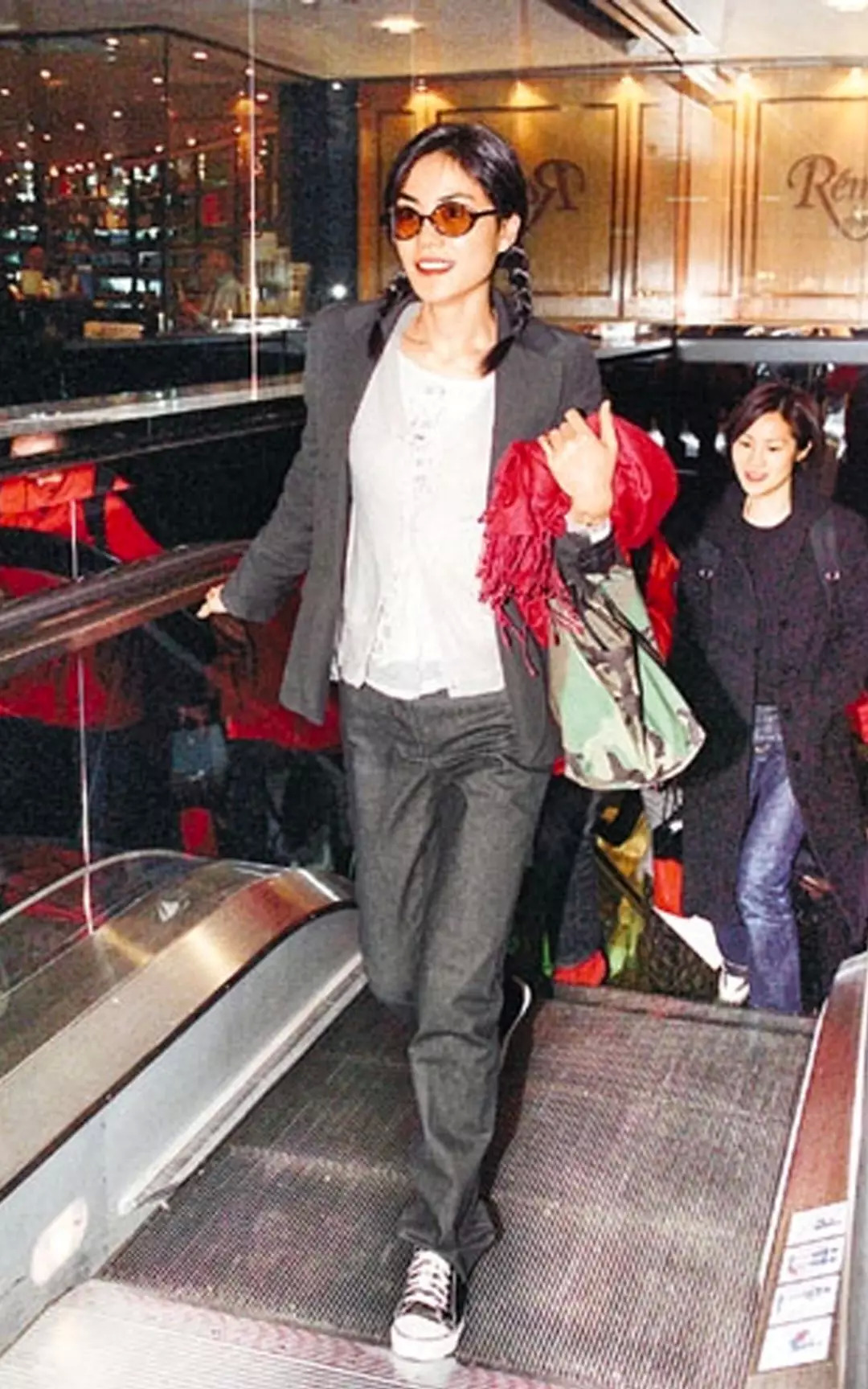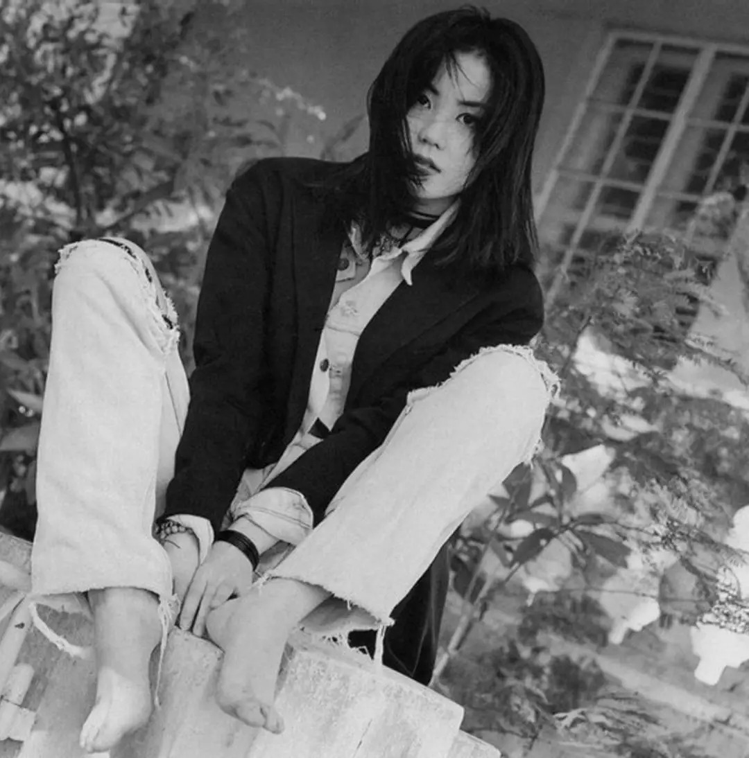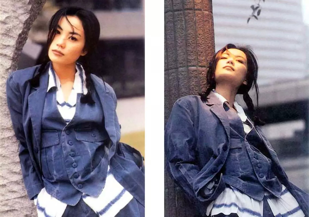 在王菲18岁时,她就很会穿西装了。梳着两条马尾辫,穿着牛仔布料的套装三件式,把衬衫下摆拉出来,有点不羁。