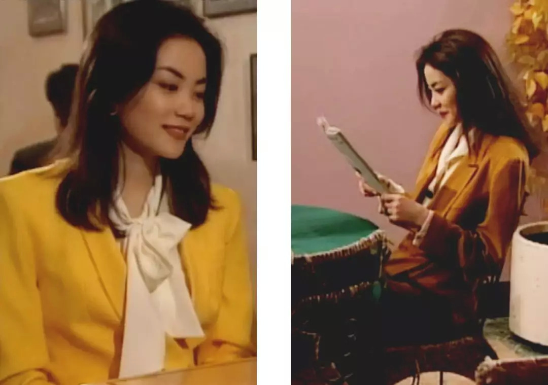 剧里她的西装好多都是彩色的,大部分时候都成套穿。