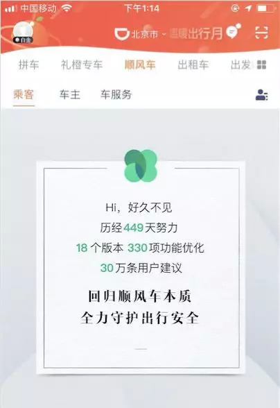 昨晚六点,滴滴顺风车在北京试运营的第一夜,上班族李静久违地打开了顺风车的页面。难以想象的是,时隔上一次订单已经近一年半了。