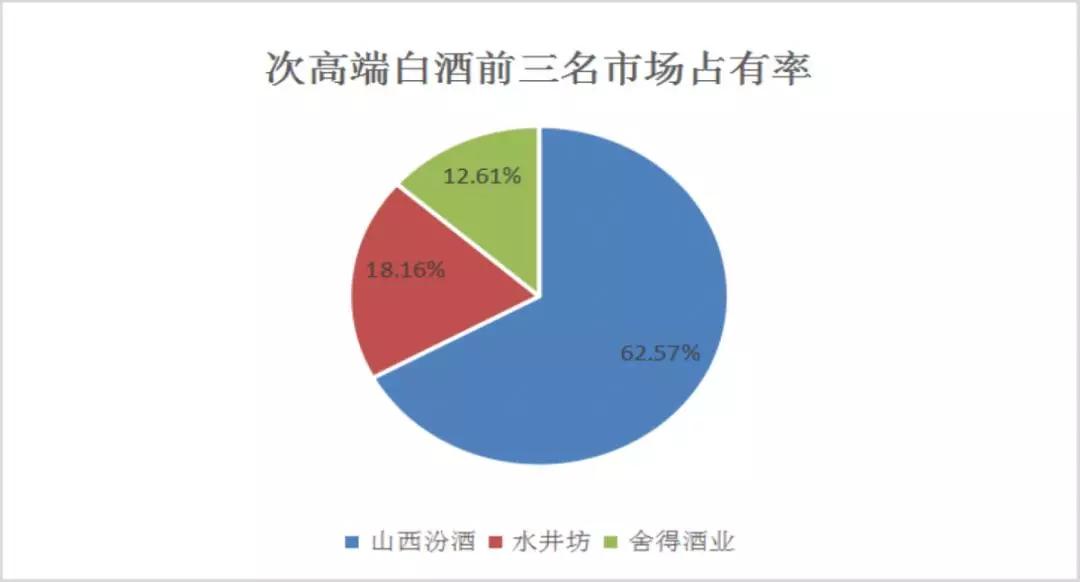 数据直观反映不同层次酒类的前三位龙头企业占有率,茅台、五粮液、泸州老窖总共占据了高端白酒95%的市场,次高端这边,汾酒、水井坊、舍得总共占据了次高端白酒93%的市场。而在明显具有地域分散属性的区域地产酒中,洋河、古井贡、今世缘也共计占据了74%的市场份额,龙头集中凸显马太效应。