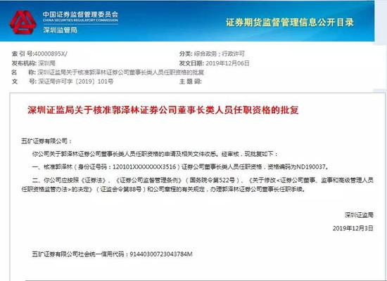 今年12月3日,深圳证监局发布公告,核准郭泽林担任五矿证券新董事长的任职资格。在消息发布后,这位出生于1988年的85后董事长一度成为了业内的焦点。