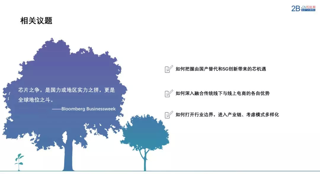 以上部分就是从概观、传统线下、电商渠道等三个维度向大家汇报的关于国内元器件流通市场的全部内容。在结束的最后,这里面也抛出了三个议题:分别为第一,如何牢牢把握由国产替代和5G创新带来的中国芯分销机遇?第二,如何深入融合传统线下与线上电商的优势 第三,打开行业边界,进入产业链、考虑模式多样性