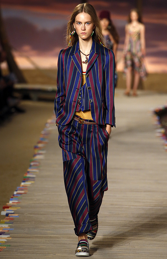 这场在夕阳下、海滩边举行的秀被一件件针织的民族风服装填斥着,让美国西部的奔放感扑面而来。