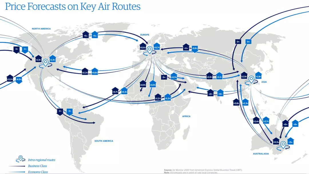 根据美国运通商旅(Amex GBT)近日发布的2020年航空监测报告(Air Monitor 2020),由于全球政治和经济的不确定性,明年航空旅游需求的增长将持续放缓。
