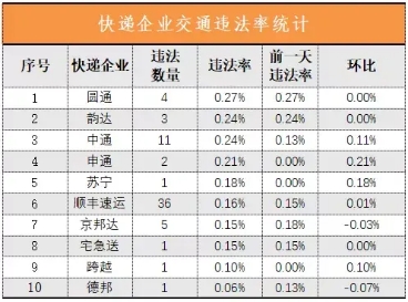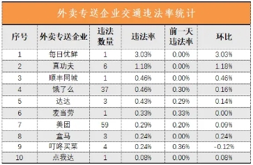 深圳交警曝光了交通违法率较高的快递、外卖企业。