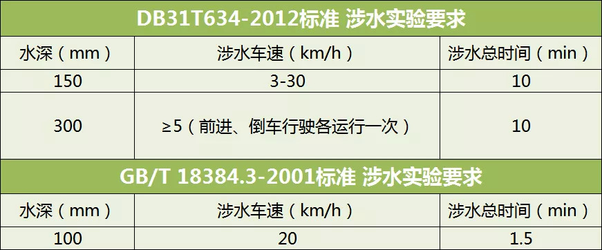 进一步的,一些城市会出台自己的关于涉水试验标准,将此作为纯电动汽车准入政策的强制性标准。这其中以上海最为出名,他们出台了DB31T634-2012标准,并且是直接针对整车进行检查。