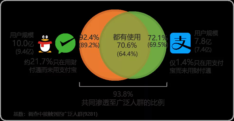 经过近十年发展,我国民众的移动支付习惯已经养成,支付宝与财付通仍然会在支付场景、交易纵深、消费金融领域发生更多更深入的竞争。