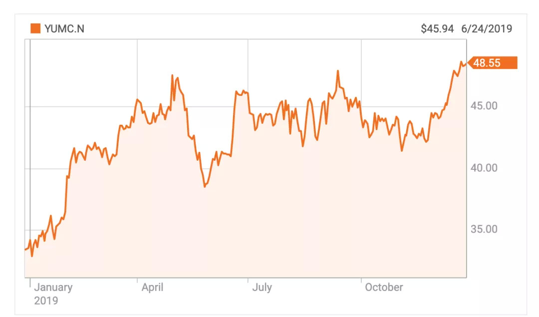 百胜中国今年以来股票涨幅超过41%,其市值现为181.86亿美元。